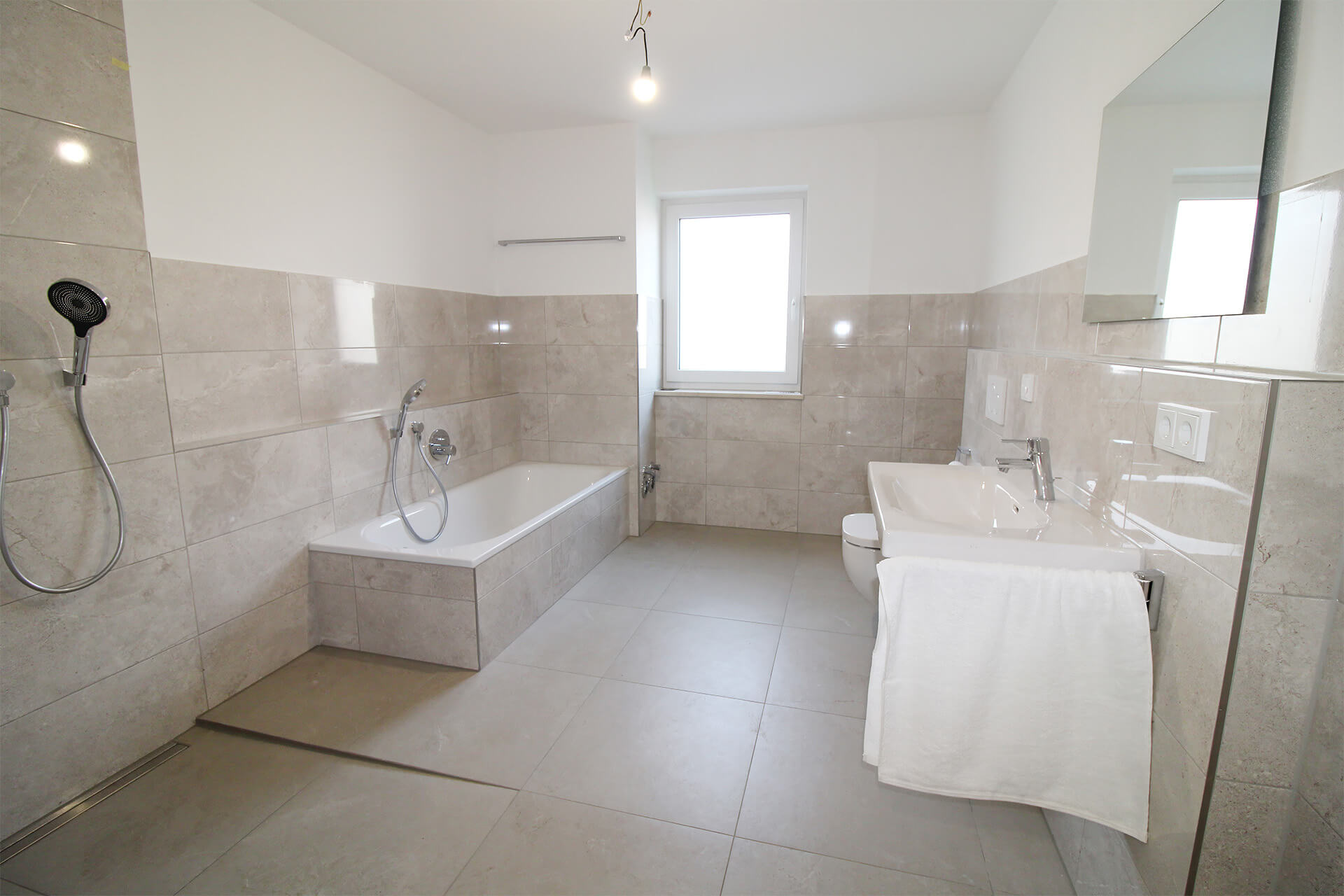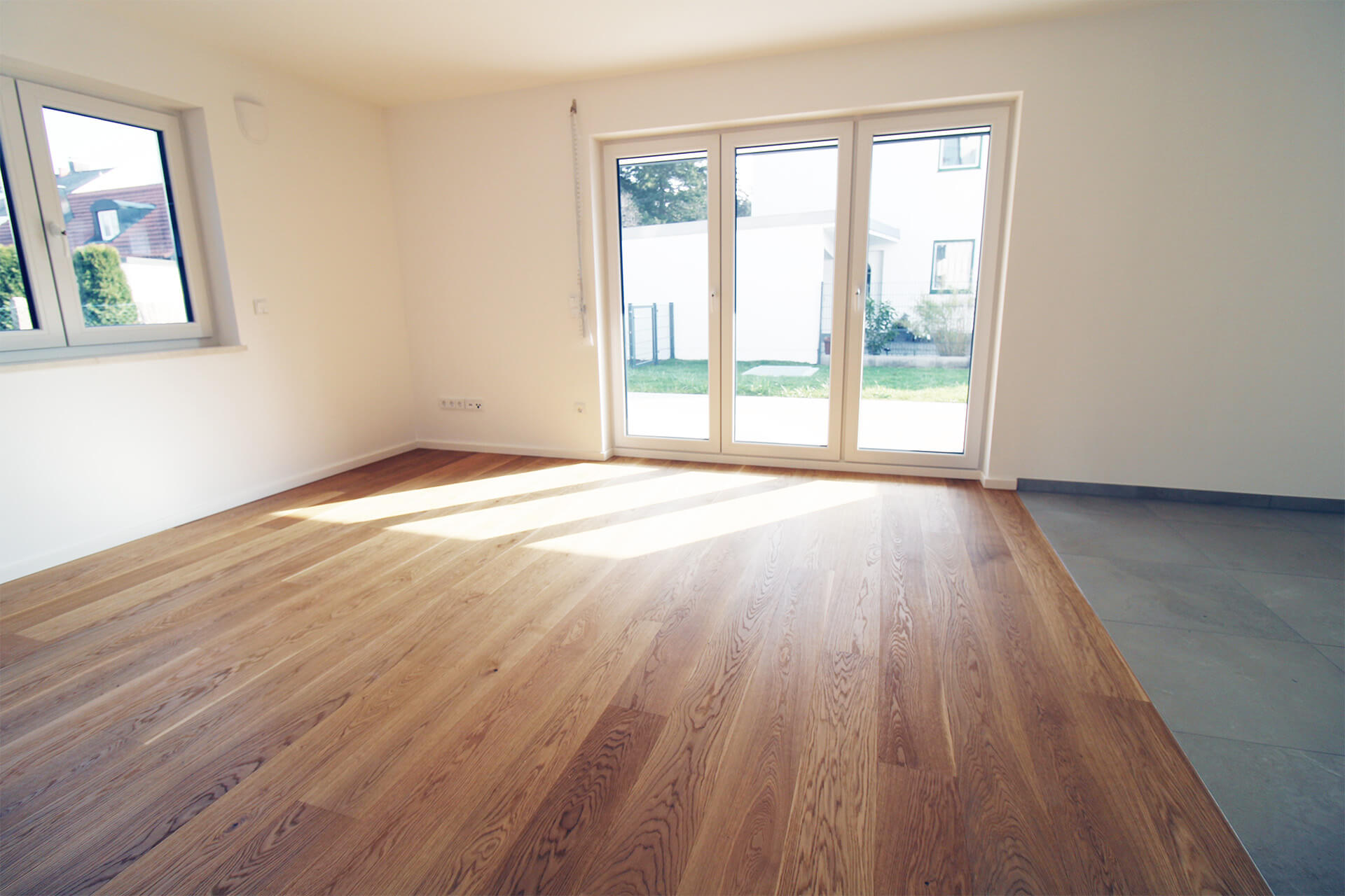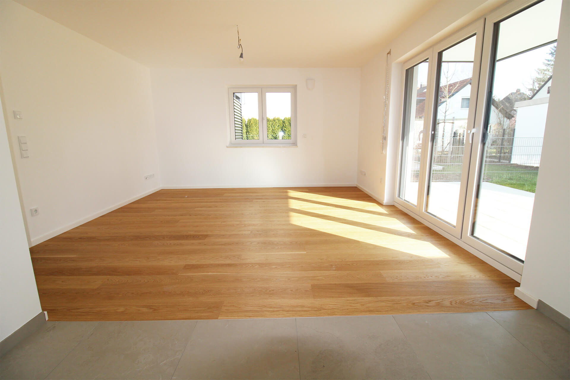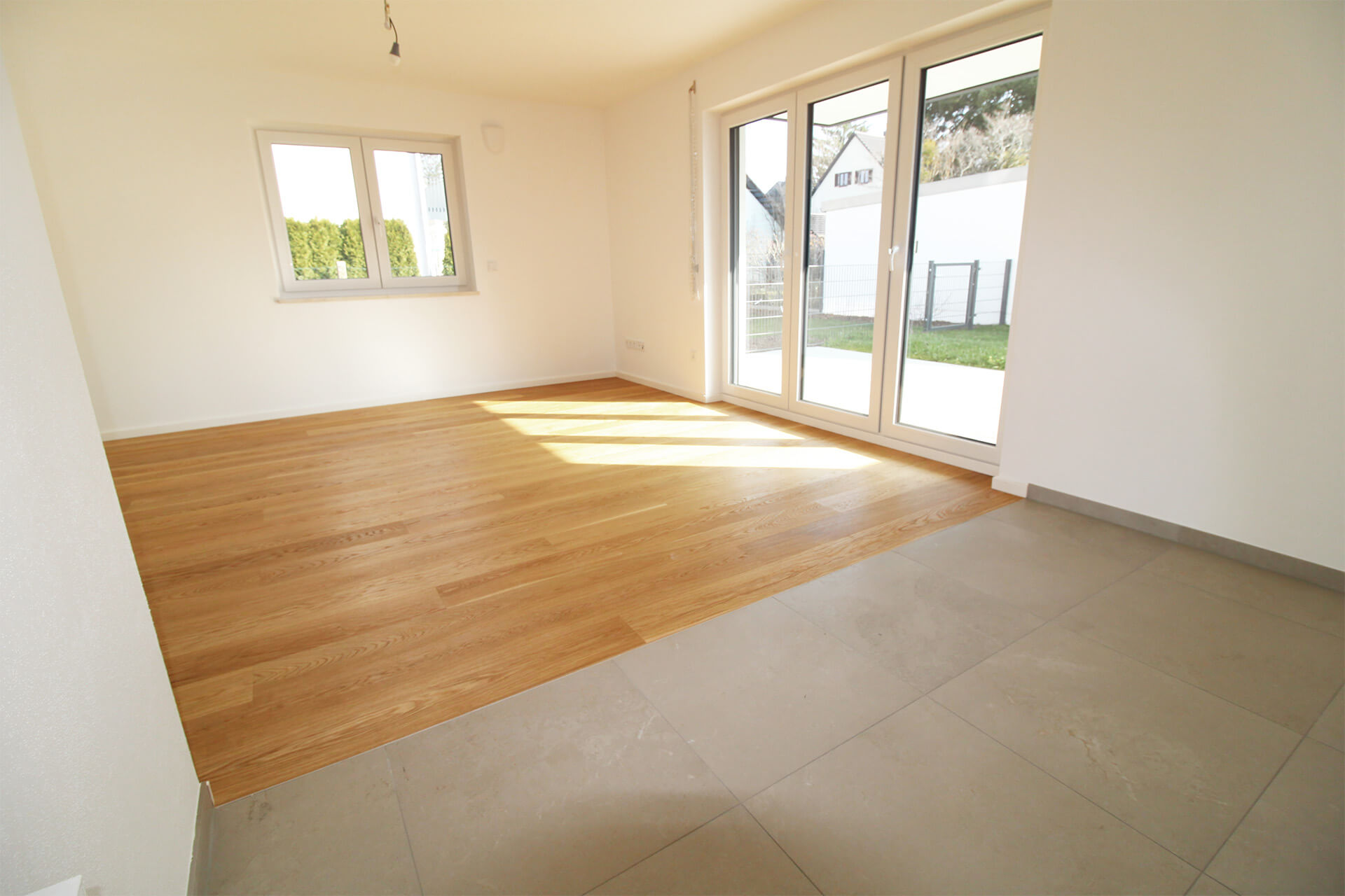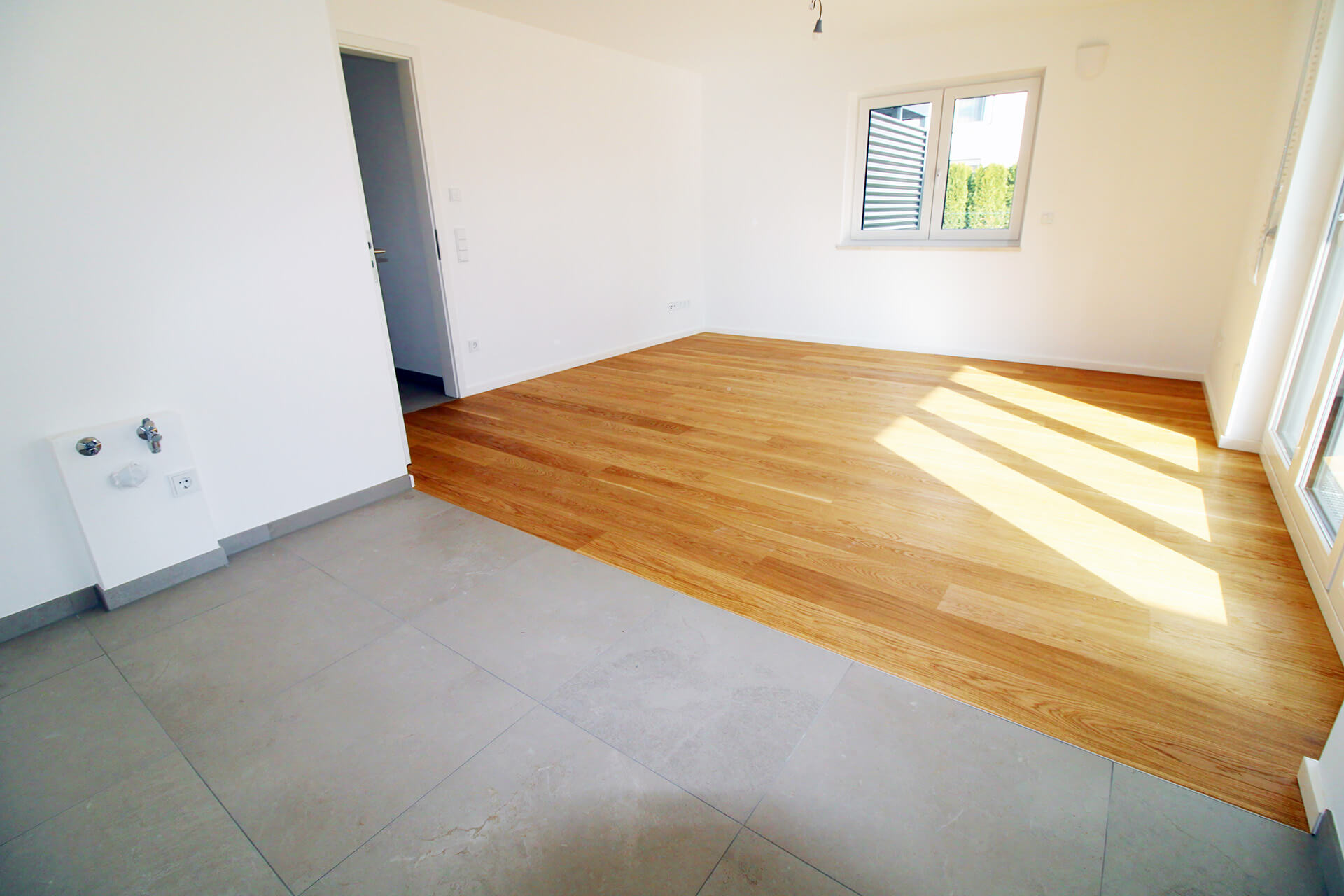 | Küche | Offener Bereich, großformatige Feinsteinfliesen |